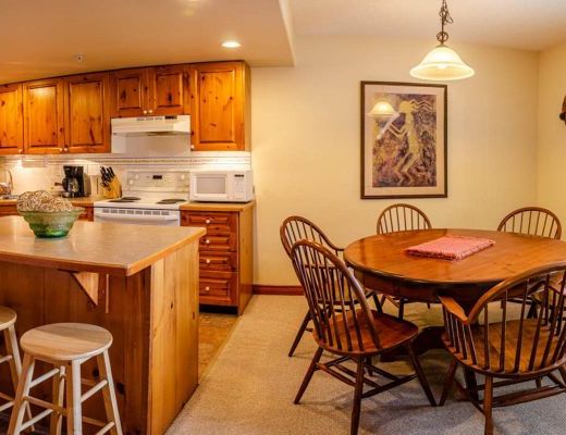 Warm and inviting, guests are made to feel at home in the charming surroundings of Timberline Village. Whether escaping your usual routine for a romantic retreat or a family getaway, you are bound to find what you are looking for right here. The fully-equipped kitchen provides the option of creating the most divine culinary delights and features handsome knotty-wood cabinetry, modern appliances and a convenient breakfast bar for informal dining. The comfortable living room is host to attractive furnishings and a lovely stone fireplace to curl up beside. With a private outdoor hot tub available for guest use, relaxation is imminent.