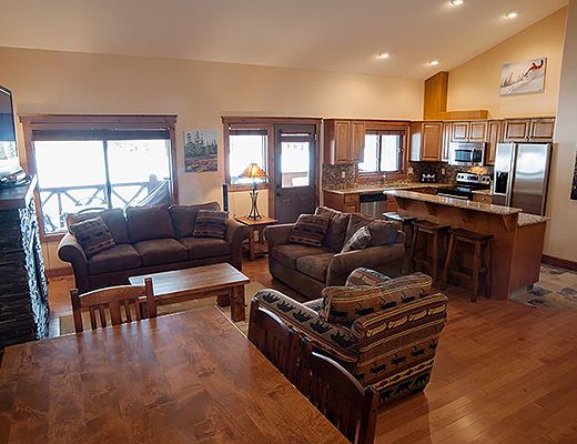 Unit sleeps 8 guests maximum. There are two full bathrooms per unit. There is a private hot tub on the deck as well as a natural gas BBQ. Hardwood floors, granite countertops, ensuite laundry and great Mountain Views.