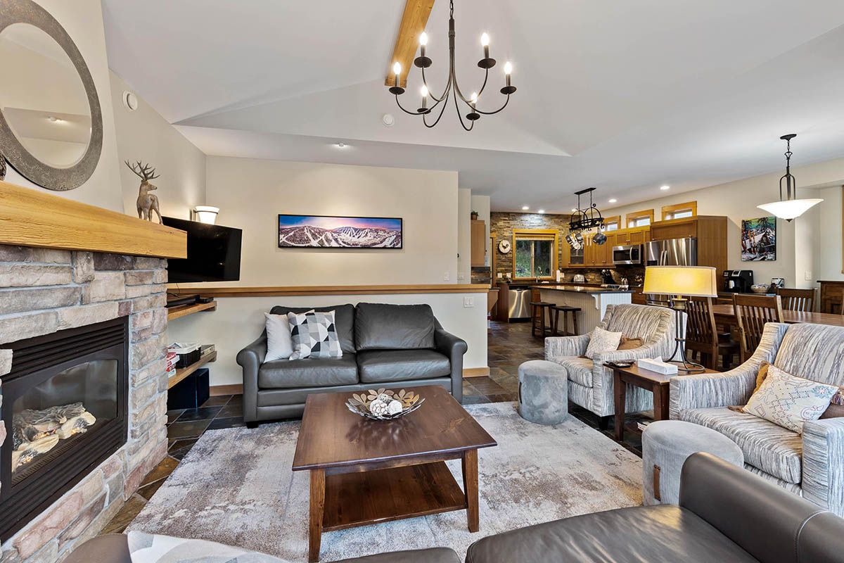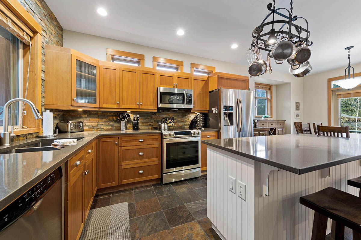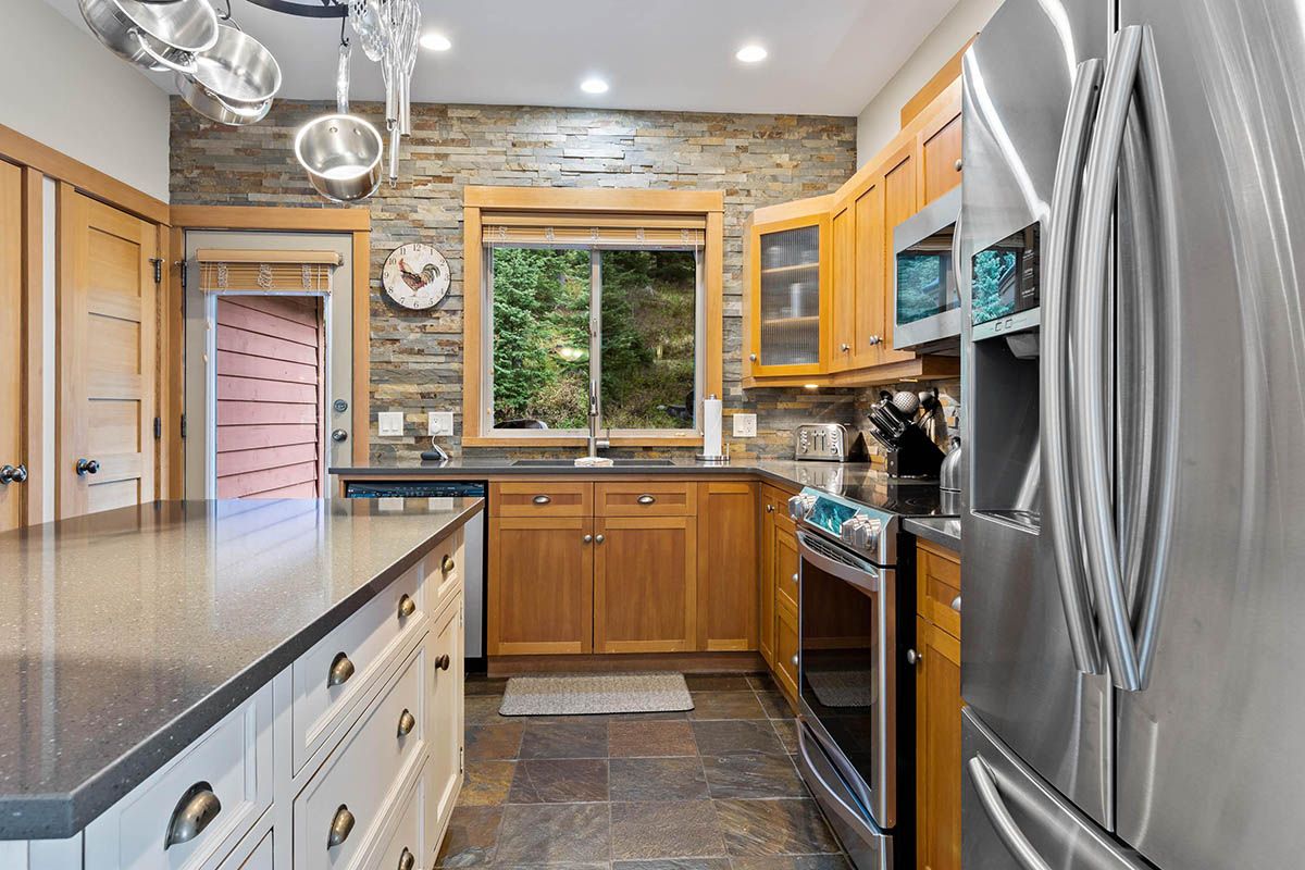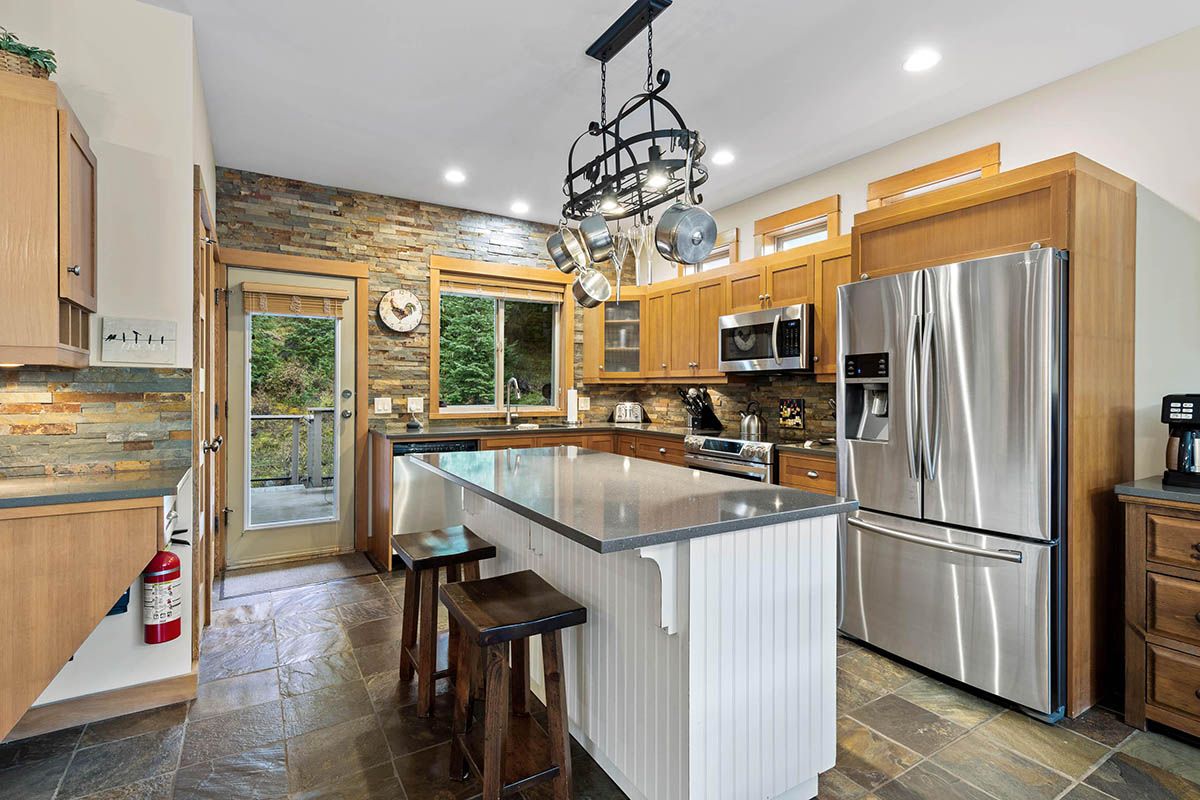 White Pines Chalet is a stunning 4-bedroom/2-bathroom vacation home offering luxurious comfort and breathtaking views of Mt. Tod and Sundance Mountain. The perfect home to make great family vacation memories, it's especially suited for the chef in the family! The gourmet kitchen features quartz countertops, a double oven induction stove, and all luxury stainless steel appliances included a double-door fridge and pull-out freezer.