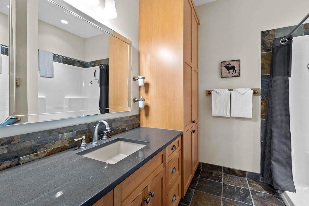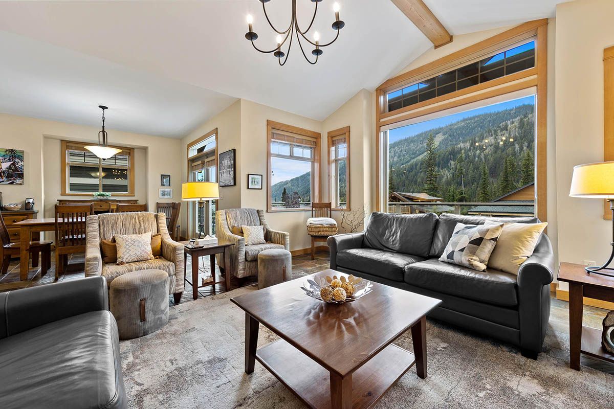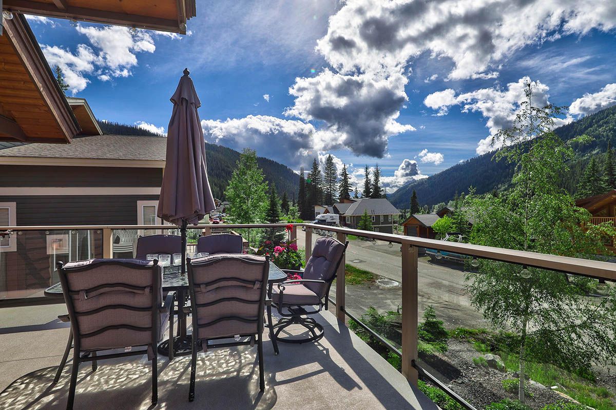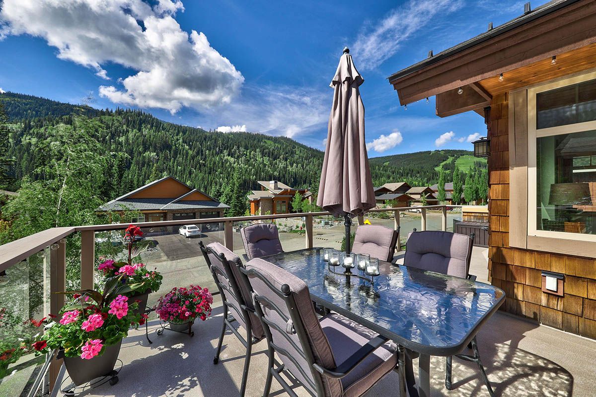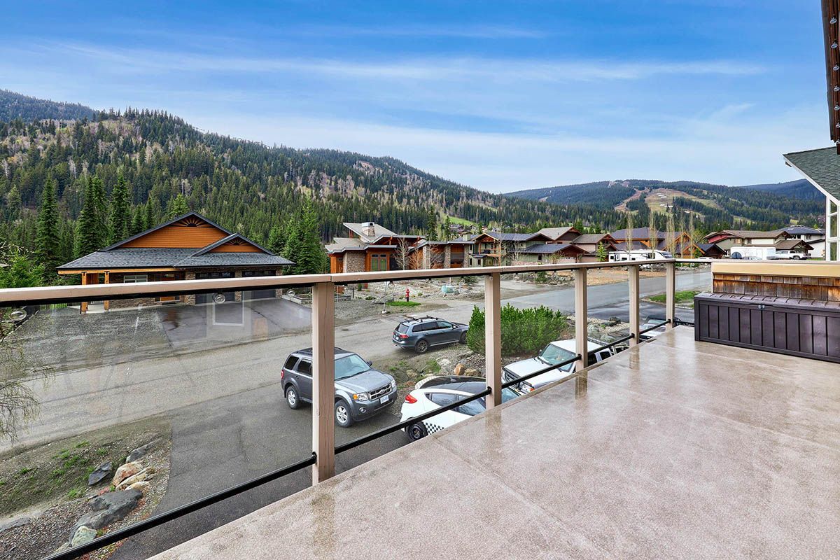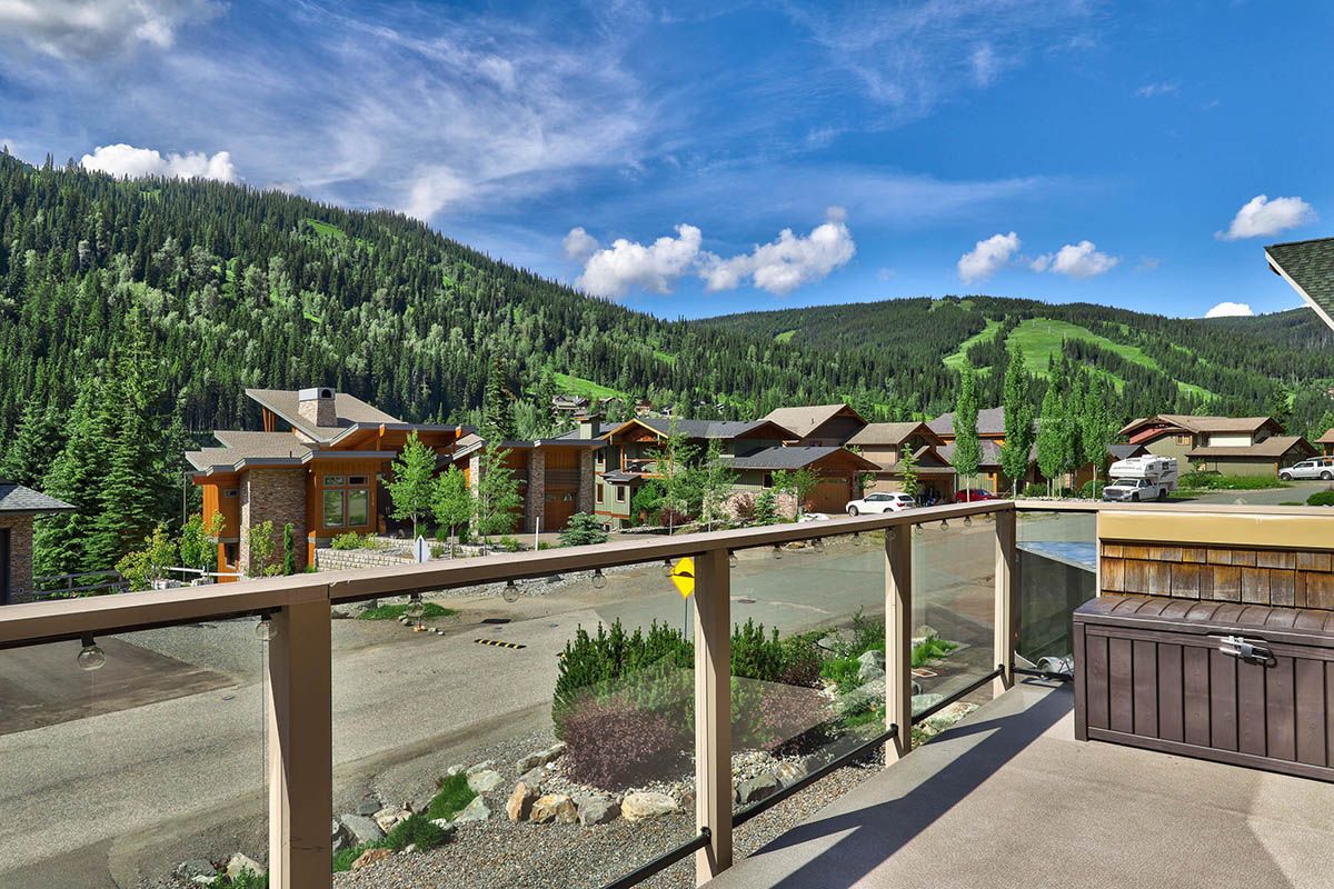 The balcony at the front of the home is perfect for summer fun, with a breathtaking view of Tod Mountain and Sundance Mountain.